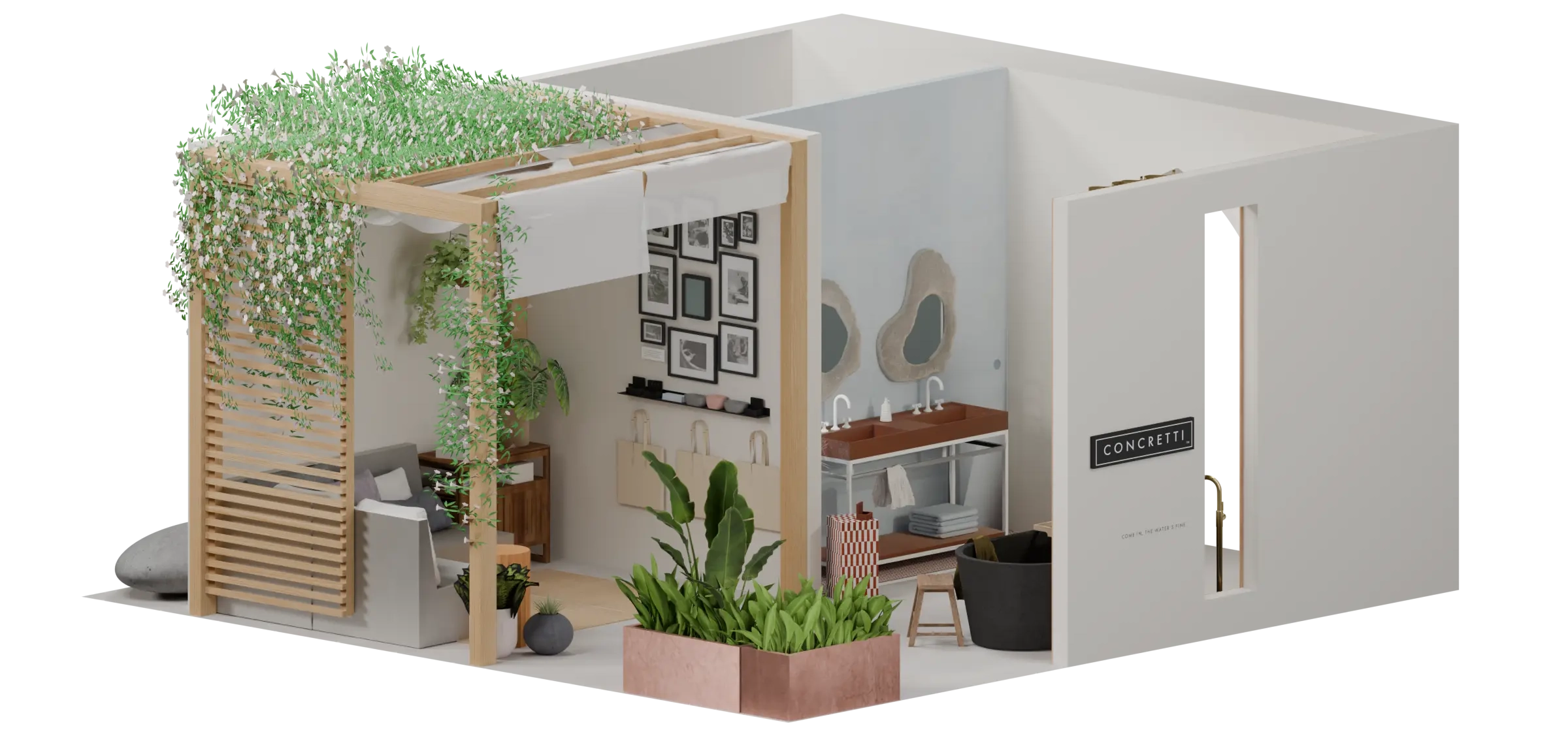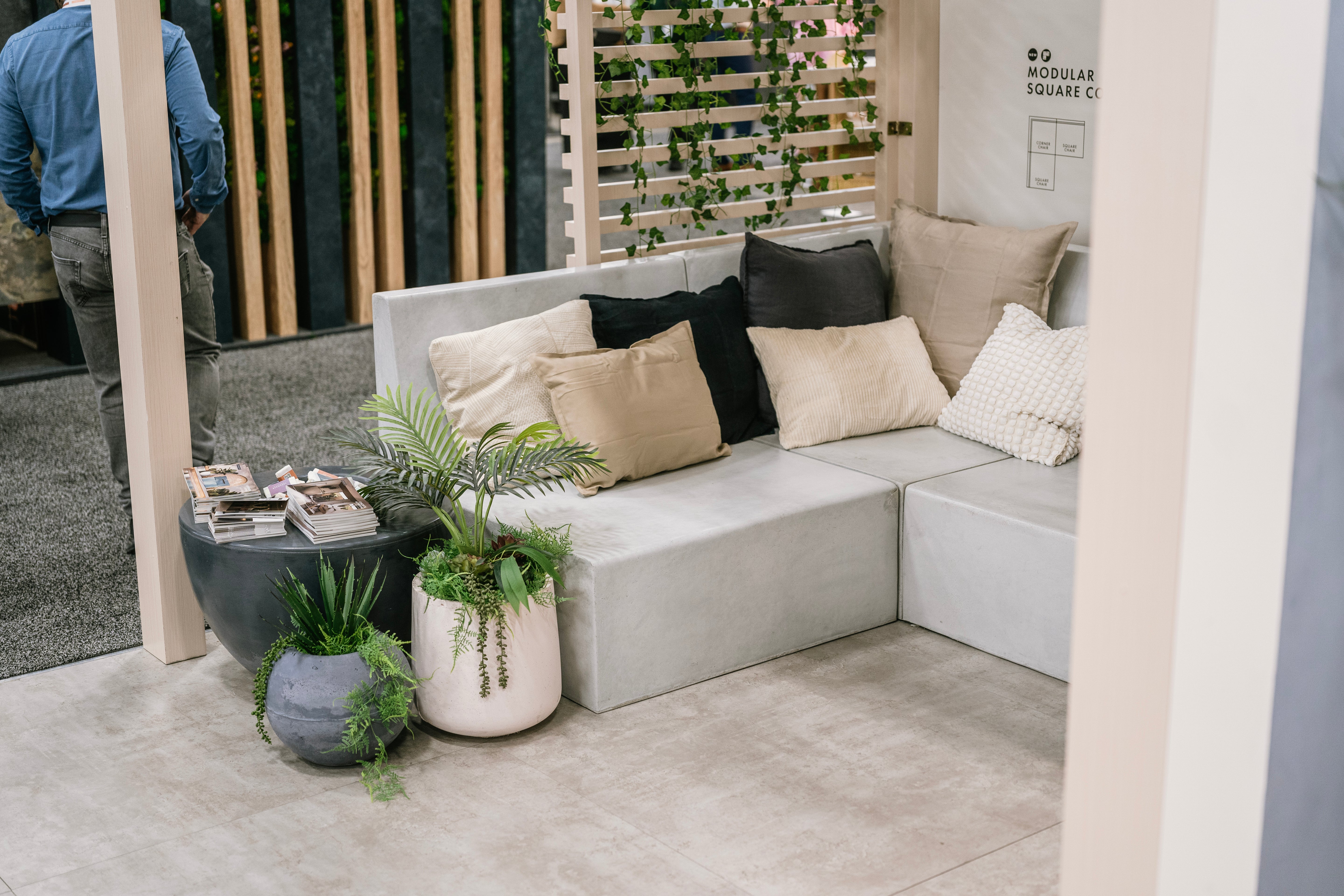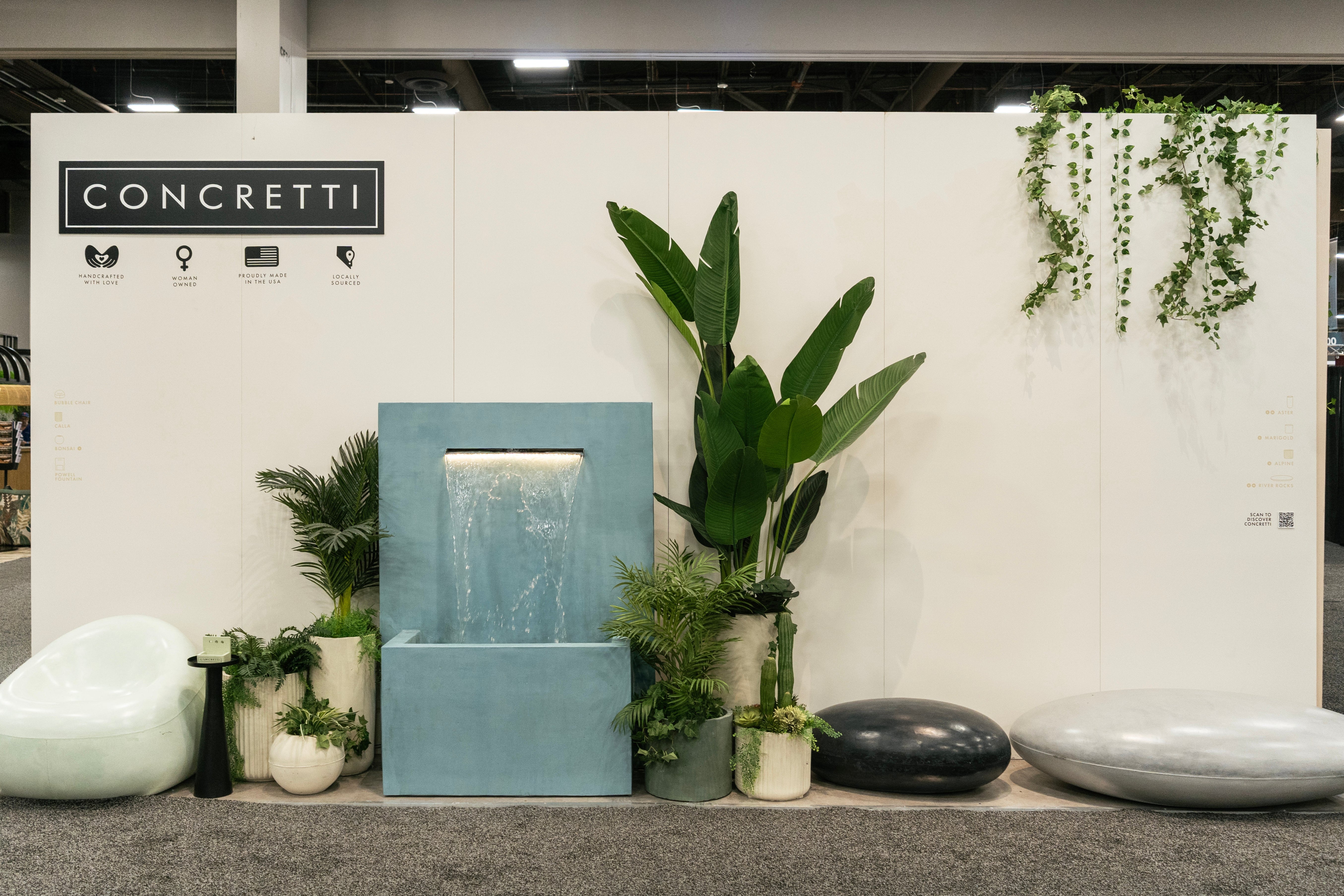 This year, our goal was to design a booth that showcased our most hospitality-forward pieces—featuring curated spaces that invited attendees to envision each of our concrete pieces seamlessly integrated into their own projects.
