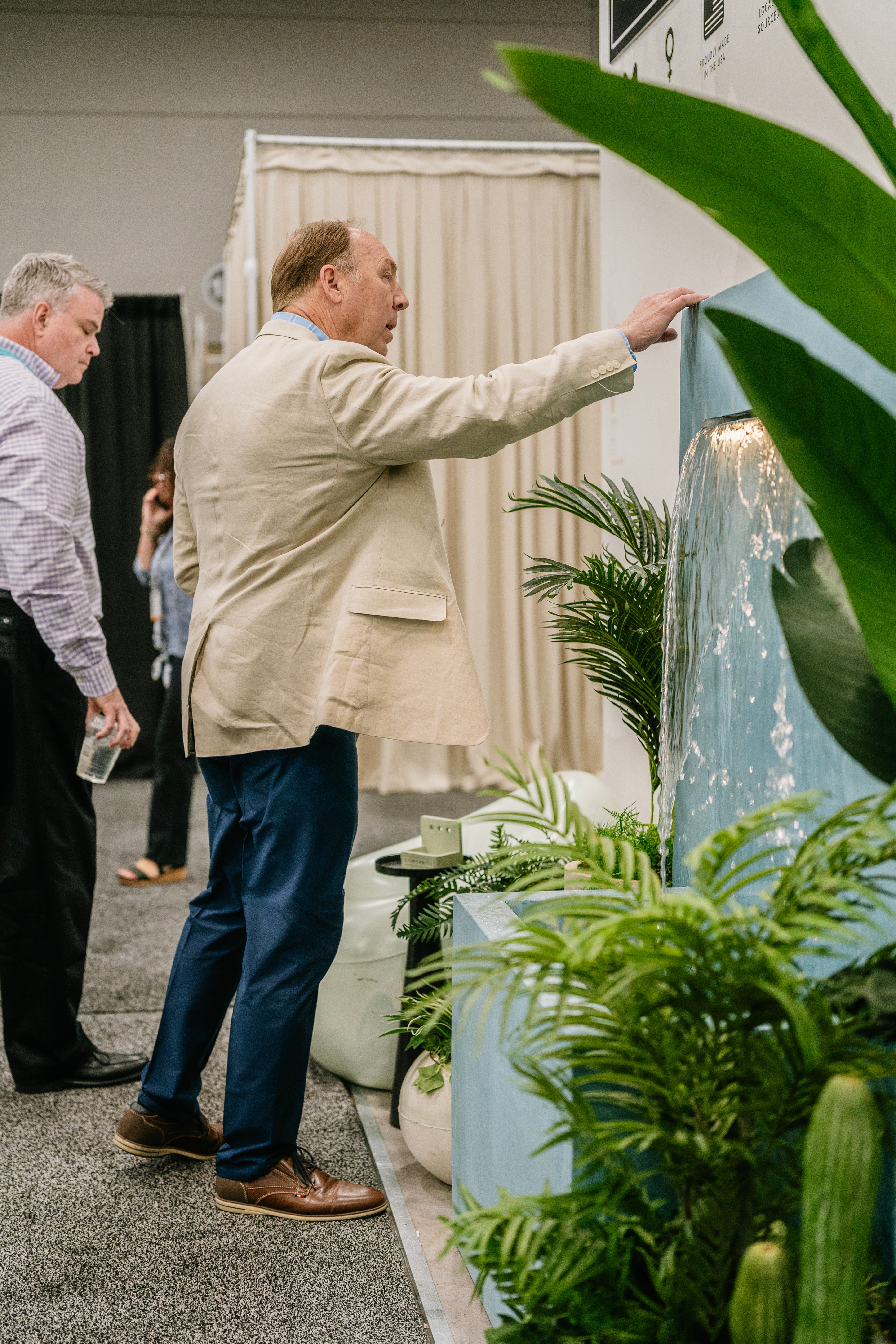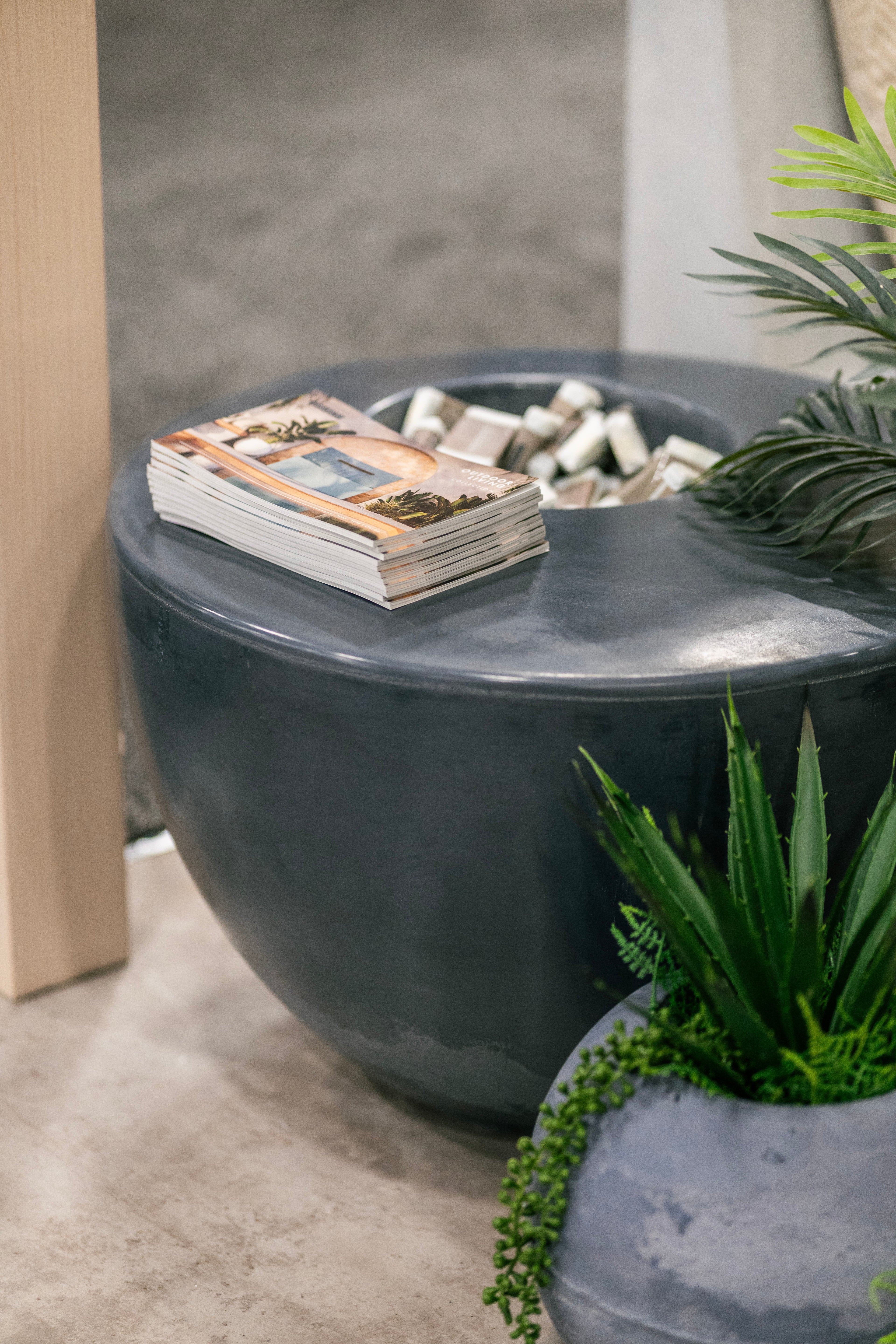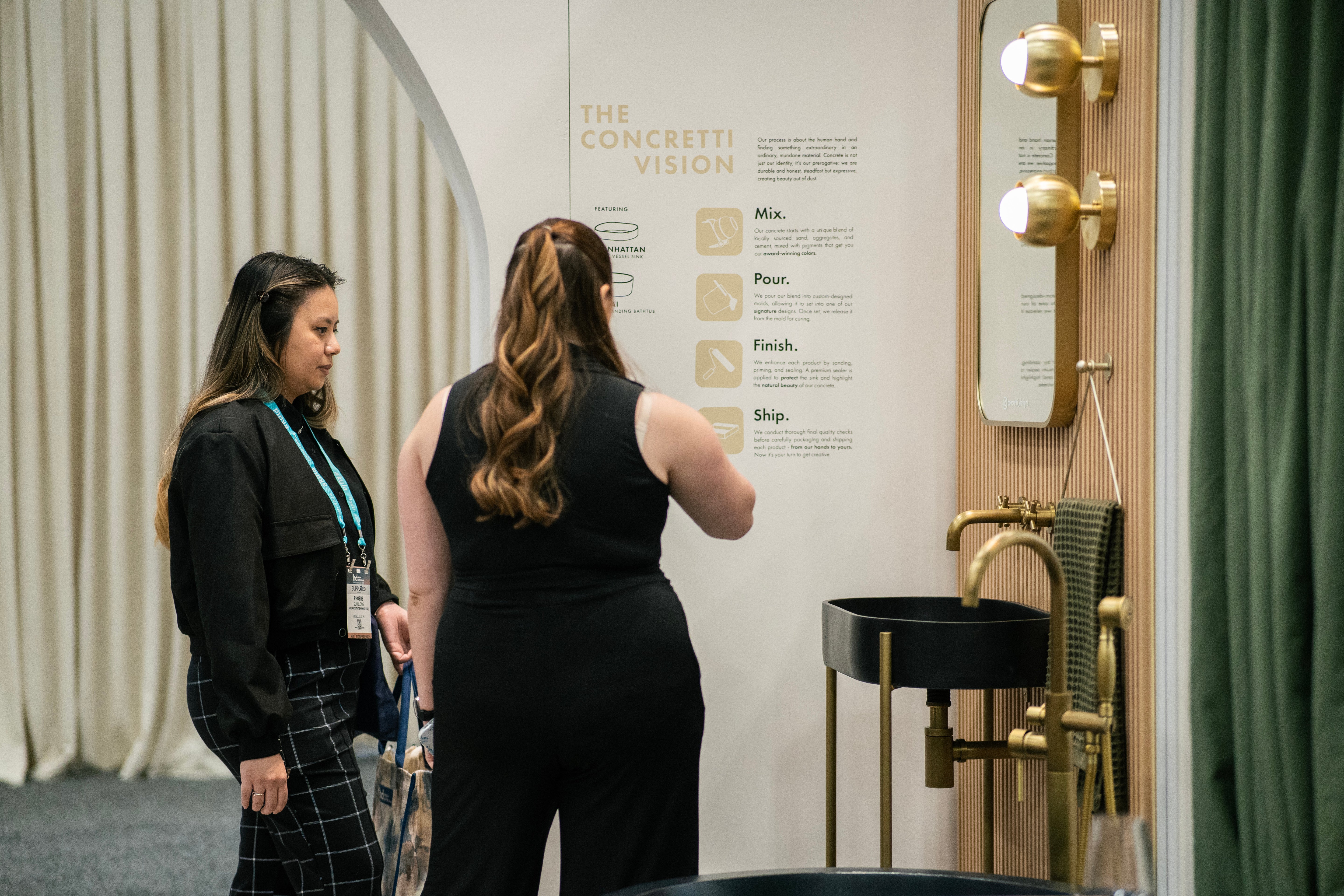 This year, our goal was to design a booth that showcased our most hospitality-forward pieces—featuring curated spaces that invited attendees to envision each of our concrete pieces seamlessly integrated into their own projects.