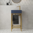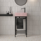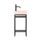 A freestanding console for the minimalist seeking a combination between luxurious design and functionality. This console is a soft-touch metal stand that blends so effortlessly into the surrounding atmosphere with a built in towel bar.