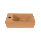 Introducing the "Atlanta" sink, a sleek and modern rectangular concrete powder room sink designed to elevate your bathroom decor. With a single handle faucet hole and the option for an overflow, this sink combines functionality with style, providing a perfect addition to any contemporary bathroom space.