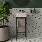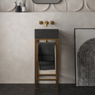 A freestanding console for the minimalist seeking a combination between luxurious design and functionality. This console is a soft-touch metal stand that blends so effortlessly into the surrounding atmosphere with a built in towel bar.